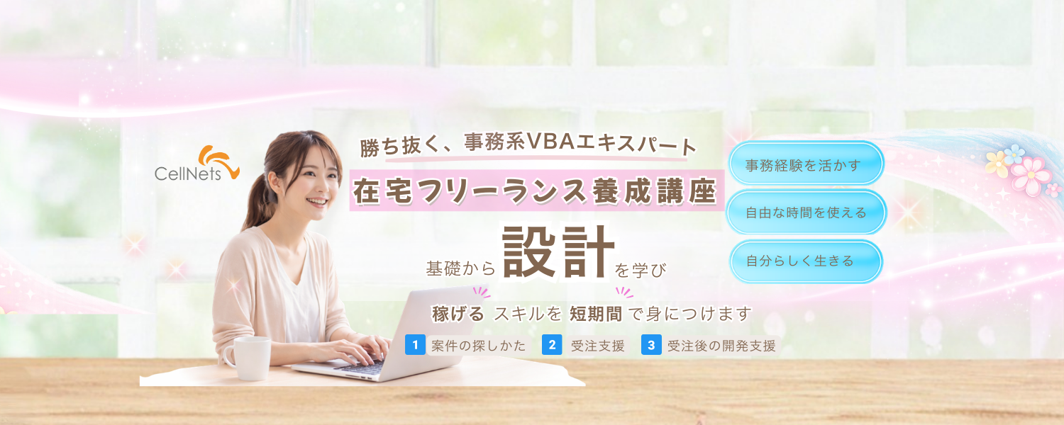 本カリキュラムでは、事務経験を武器に、効率のよいセルネッツ(CN)流メソッドを身につけ「稼げるフリーランス」として自立するための支援を行います。